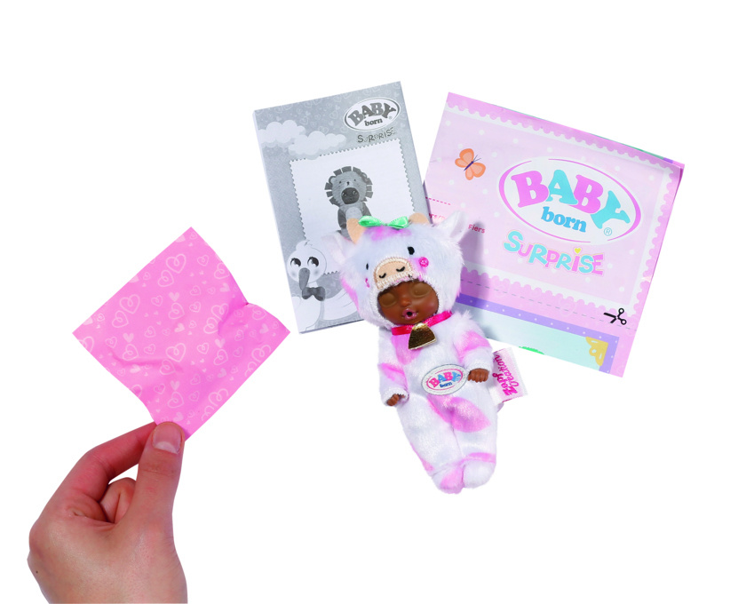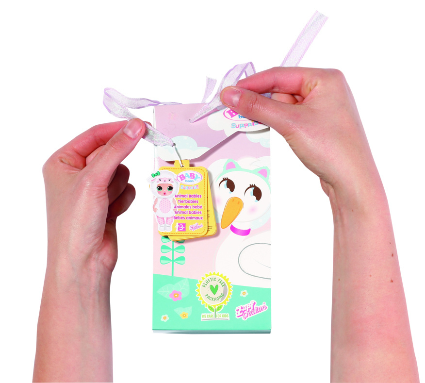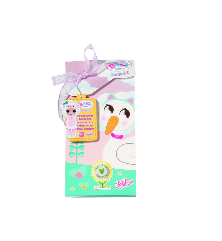 Het is tijd om wat te dollen met dieren! De ooievaar creëert een hele dierenkermis en trekt de BABY born Surprise Babies allerlei dierenoutfits met een pluizige vacht aan. De kleintjes zijn vermomd als dieren uit de jungle, het bos, van de boerderij en