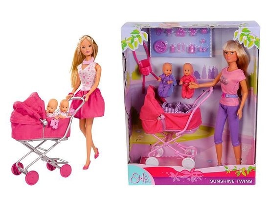 Steffi met 2 baby’s, assortiment , buggy, baby drager en veel accessoires, 10 stuks, 29cm, 7cm, 3 jaar+