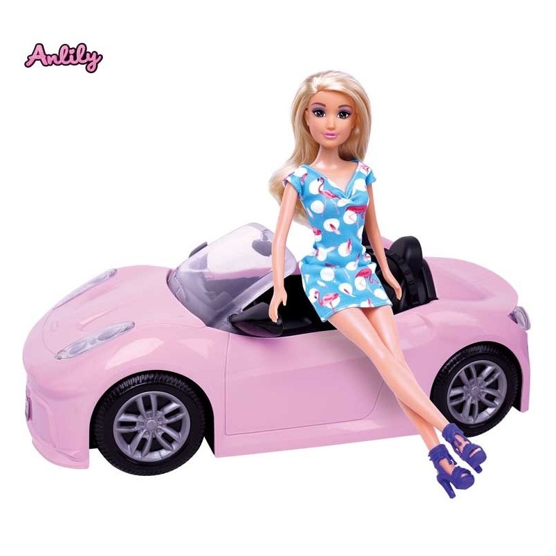 Stap in deze opvallende roze cabriolet en beleef eindeloze avonturen! Deze stijlvolle open sportwagen is ontworpen voor twee modepoppen (apart verkrijgbaar) en zit vol realistische detail