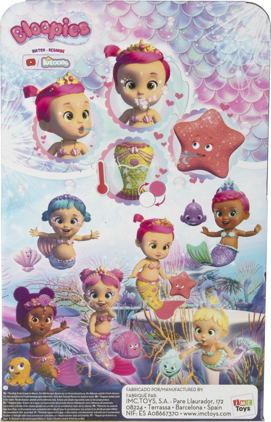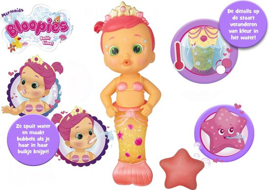 Maak kennis met Bloopies Mermaids Luna, je nieuwe vriendinnetje voor in bad of in het zwembad! Luna is een echte zeemeermin met een gele vin, een sterren tiara en ze heeft prachtige decoratie op haar gezichtje. Als je haar onder water houdt, zullen de zee