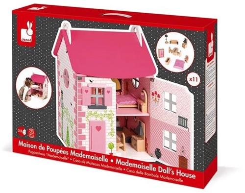 Een fantastisch poppenhuis met 3 verdiepingen, mooi gedecoreerd met verschillende meubeltjes. Open de deuren van het huis om te spelen en sluit ze om alles binnen op te bergen en makkelijker te vervoeren. Kinderen kunnen hun eigen wereld creëren en hun eigen verhalen verzinnen! De praktische deuren zijn magnetisch en het huis kan ook via het dak worden geopend voor een betere toegang tot de verschillende kamers. Het huis is geschikt voor figuren tot ongeveer 11,5 cm hoog. Het meubilair omvat : 11 accessoires om je huis in te richten : een kleerkast met openslaande deuren, een bed met hoezen, kaptafel, badkuip, bank, lamp, tafel, 2 stoelen en een keuken. Eenvoudige montage.