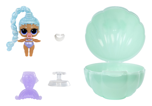 Elke pop is ook inclusief een eigen bol met schelpenthema die je kunt gebruiken als display, compleet met standaard om je zeemeermin in stijl tentoon te stellen. Perfect om mee te spelen en te pronken. De Makeover Magic Babyzusjes zijn de perfecte maatjes voor de L.O.L. Surprise Mermaids! Makeover Magic Tots™ (elk afzonderlijk verkrijgbaar).
