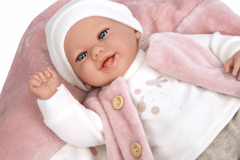 De Colin-pop van het merk Arias, 40 cm lang, is een prachtig exemplaar dat iedere poppenliefhebber zal betoveren. Deze pop, volledig vervaardigd in Spanje, combineert traditionele vakmanschap met moderne details. Colin straalt elegantie uit met zijn zachte fleecejack in verfijnde poederroze en lichte tinten, waardoor hij een echte blikvanger is. Dankzij zijn realistische gewicht voelt hij als een echte baby aan, wat bijdraagt aan de spelervaring.