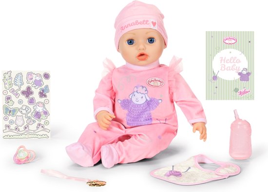 Baby Annabell is ineens dol op baby-yoga. Op het roze speelpakje laat het schaap in haar oversized trui zien hoe