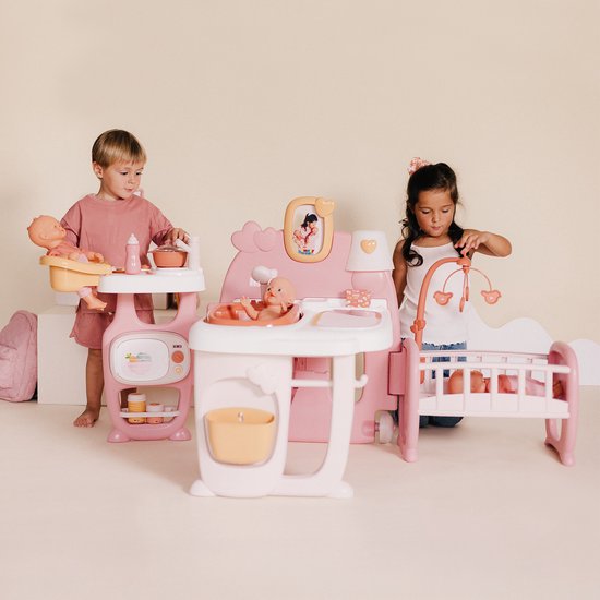 Met deze uitgebreide Baby Nurse verzorgingsspeelset ben jij de perfecte poppenouder! Deze alles-in-één set bevat een badje, stoel, aankleedtafel én tal van accessoires zoals een flesje, thermometer, luiers en meer – in totaal maar liefst 23 stuks! Alles w
