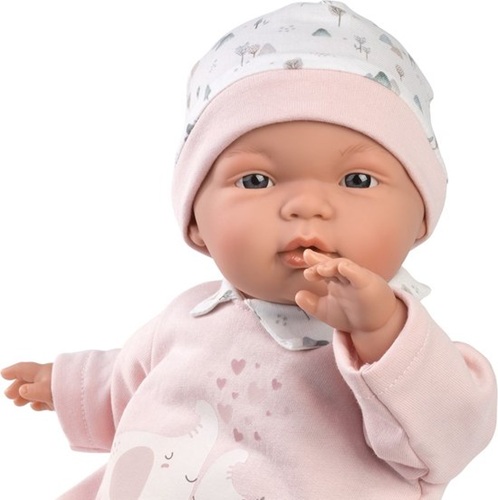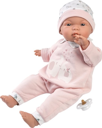 Lieve softbody babypop blank van het merk Llorens 38 cm. Het lijfje is van stof, de armen , benen en hoofdje zijn van vinyl. Zij heeft sprekende blauwe ogen en geen haar. Inclusief kleding en speen.Deze pop heeft geen geluidsfunctie