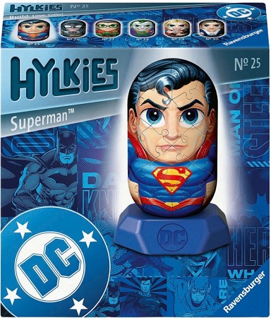 De Hylkies beelden een aantal van de beroemdste filmhelden uit: uniek geïllustreerd op een bijzondere 3D capsulevorm. Ontdek je favorieten stukje bij beetje opnieuw: met 54 bedrukte plastic puzzelstukjes, aan de achterkant genummerd, kun je één van je favoriete helden maken. Eenmaal in elkaar, kun je hem op de voet plaatsen en dan als blikvanger ergens neerzetten. Of het nu gaat om één figuur of een verzameling van meerdere Hylkies – door de speciaal ontworpen capsule-look zijn ze een hoogtepunt van elke verzameling. Naast de basis en de hoogwaardige kunststof onderdelen die worden gebruikt om de capsule in elkaar te zetten, wordt elk figuur ook geleverd met een kleine personagekaart.