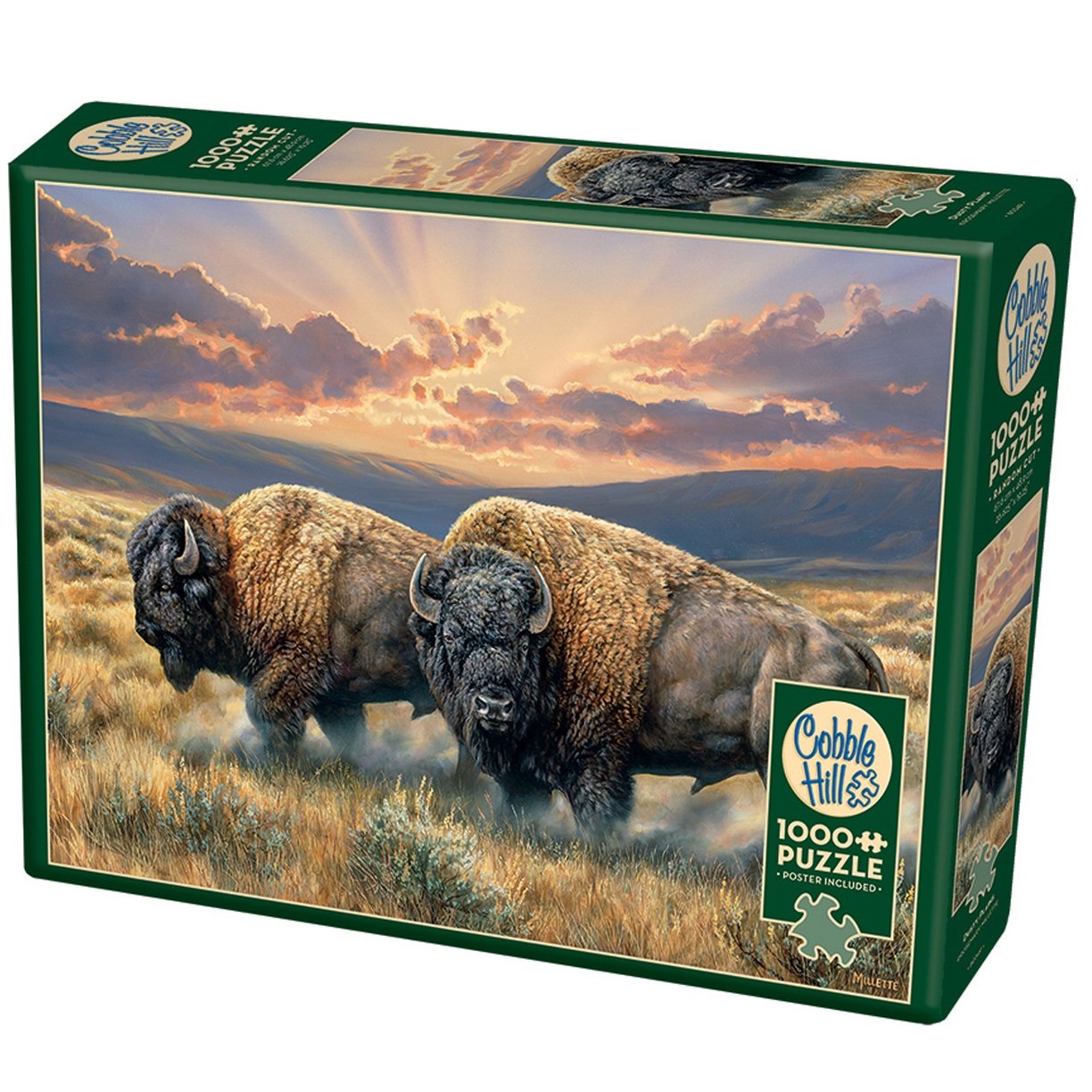 Twee buffels op de voorgrond op deze puzzel van Cobble Hill met 1000 stukjes.