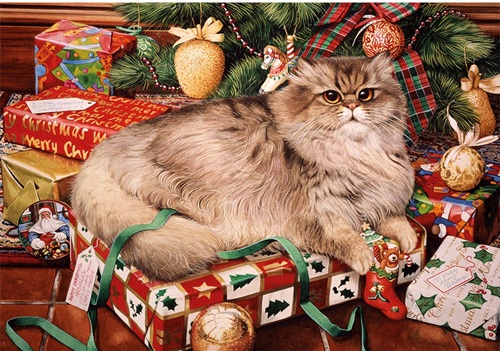 Kerstbomen, linten en allerlei glanzende snuisterijen, het is de droom van elke kat!