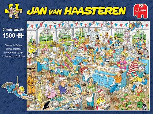 Welkom bij het bakkersduel. Alleen de besten nemen deel aan de wedstrijd. Maar een taart bakken voor de wedstrijd is moeilijk. Niet iedereen is succesvol… Wie gaat er met de winnaarstrofee naar huis? Een Jan van Haasteren puzzel is meer dan een gewone legpuzzel: het is een avonturenserie, met vertrouwde hoofdrolspelers in een eindeloos decor vol absurde details. Ontdek alle doldwaze avonturen van de Jan van Haasteren – familie! We zijn trots dat onze puzzels zijn gemaakt van gerecycled karton in Europa. Om het karton in puzzelstukjes te snijden, gebruiken we het dunste mes dat er is. De puzzel ziet er bijna naadloos uit als hij klaar is. Geniet van deze Jan van Haasteren – puzzel!