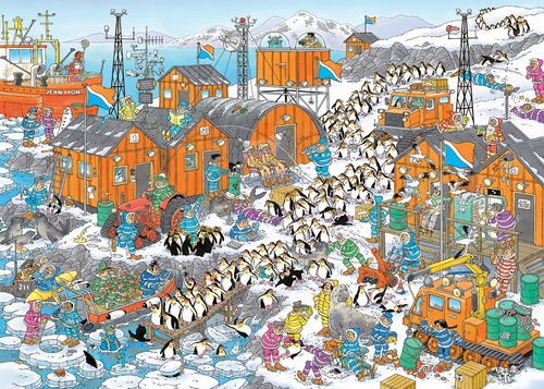 De Jan van Haasteren familie is op expeditie naar de Zuidpool! Het land van sneeuw, ijs en pinguïns. Ze hebben allemaal hun eigen manier gevonden om de barre omstandigheden te overleven. Of valt het allemaal wel mee? Een Jan van Haasteren puzzel is meer dan een gewone legpuzzel: het is een avonturenserie, met vertrouwde hoofdrolspelers in een eindeloos decor vol absurde details. Ontdek alle doldwaze avonturen van de Jan van Haasteren – familie! We zijn trots dat onze puzzels zijn gemaakt van gerecycled karton in Europa. Om het karton in puzzelstukjes te snijden, gebruiken we het dunste mes dat er is. De puzzel ziet er bijna naadloos uit als hij klaar is. Geniet van deze Jan van Haasteren – puzzel!