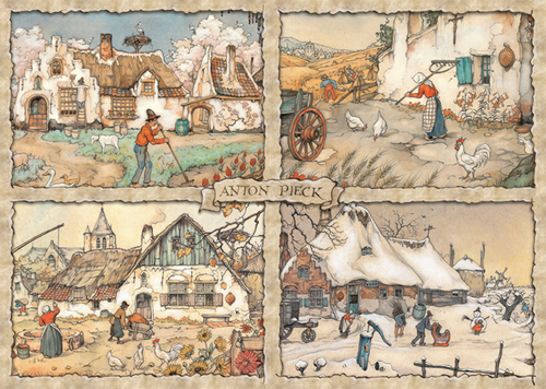 Anton Pieck is de bekendste Nederlandse illustrator uit de twintigste eeuw. Het verleden, vooral de 19e eeuw, inspireerde Anton Pieck. Anton Pieck is misschien wel het meest bekend van het Sprookjesbos in de Efteling. De collectie puzzels van Jumbo laten op unieke wijze het werk van Anton Pieck zien. In deze puzzel vindt u de illustratie 4 Seizoenen.