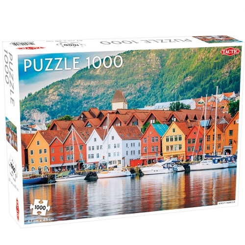 Puzzel Around the World, Northern Stars: Bergen Harbour – 1000 stukjes Afmeting 67 x 48 cm Leg de puzzel en kleur deze in tot een een unieke puzzel. De afbeeldingen zijn zeer gedetailleerd en maken het leggen van deze puzzel tot een nieuwe uitdaging. Mooi