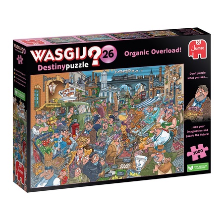 Ach, de bedrijvigheid van een levendige markt! je smaakpapillen slaan op hol en het water loopt je erbij in de mond. Zo veel keuze, zo veel kleuren, zo veel geweldige koopjes! maar wat verandert alles toch snel! favoriete familierecepten maken plaats voor streetfood en biologische opties, menu’s zonder vlees en vegan varianten van bijna alles. Ideeën en aanbevelingen komen inmiddels net zo goed van influencers als van de slager en de groenteboer. Alles moet tegenwoordig eetbaar, verantwoord en duurzaam zijn. Dus hoe ziet een marktplein er vandaag de dag uit? dat is het beeld dat jij puzzelt! over wasgij deze wasgij legpuzzels van jumbo zijn speciaal ontwikkelt voor volwassenen. Anders dan bij andere puzzels, maak je bij wasgij niet een afbeelding van de doos na maar moet je zelf je fantasie gebruiken om de puzzelplaat compleet te maken! er zijn drie verschillende concepten: original, mystery en destiny. Bij wasgij destiny moet je de hints en je fantasie gebruiken om er achter te komen hoe de toekomst eruit zal zien!