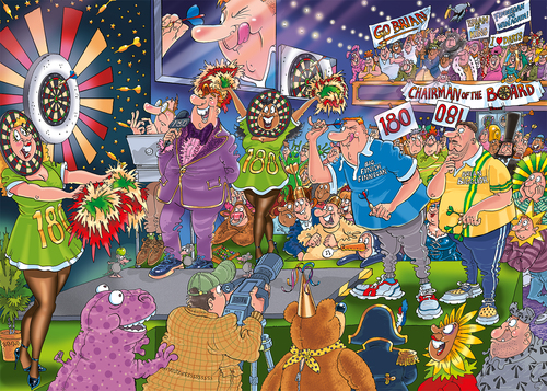 De oche ligt klaar, het publiek is dolenthousiast en de spanning is om te snijden! Het is de grote finale van het Kampioenschap Darten. Twee zwaargewichten nemen het tegen elkaar op en staan klaar om te gooien voor de glorie. In de menigte staan verklede mensen, op het podium juichen cheerleaders en tv – ploegen leggen elk moment vast voor de miljoenen kijkers thuis. Gaan we een winnende worp zien of schiet de pijl zijn doel voorbij? Gebruik je fantasie en de gegeven aanwijzingen om uit te puzzelen wat er gaat gebeuren. Dit tafereel ga jij in elkaar zetten. Deze Wasgij legpuzzels van Jumbo zijn speciaal ontwikkelt voor volwassenen. Anders dan bij andere puzzels, maak je bij Wasgij niet een afbeelding van de doos na maar moet je zelf je fantasie gebruiken om de puzzelplaat compleet te maken! Er zijn drie verschillende concepten: Original, Mystery en Destiny. Bij Wasgij Mystery moet je de hints en je fantasie gebruiken om er achter te komen hoe het tafereel er in de toekomst uit zal zien. Het unieke Wasgij concept stimuleert volwassenen om hun fantasie te gebruiken!