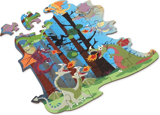 Met deze vrolijke puzzel draken van Scratch duik je in een magische fantasiewereld vol vuurspuwende draken en kleurrijke avonturen. De contour puzzel bestaat uit 29 stevige kartonnen stukjes en is speciaal ontworpen voor kleine handjes vanaf 3 jaar. De puzzel heeft een unieke vorm en wordt geleverd in een mooie ronde doos, zodat je hem makkelijk overal mee naartoe neemt.