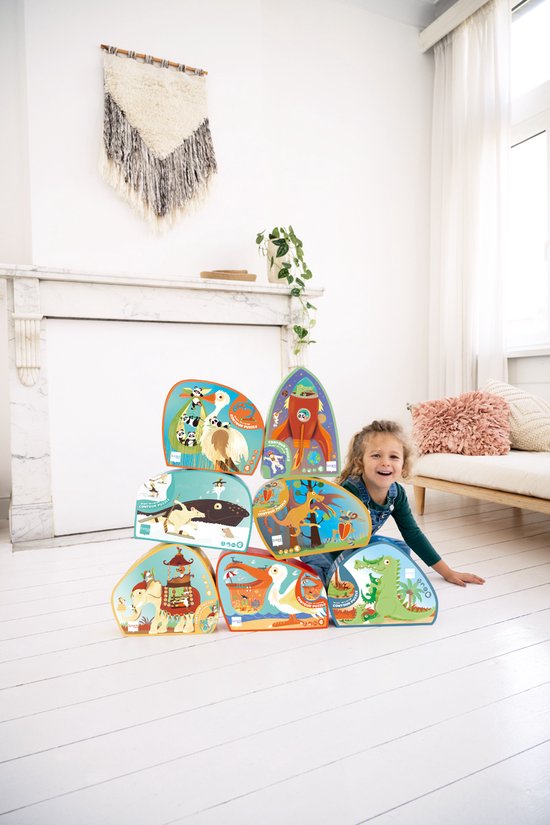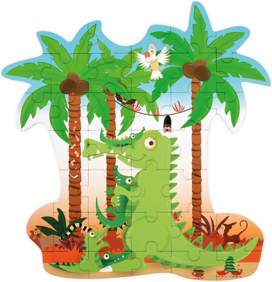 Maak een schattige afbeelding van een krokodil met haar kleintjes door 36 stukjes aan elkaar te puzzelen. De puzzel heeft een leuke vorm en zit verpakt in een mooie, stevige vormendoos. Ideaal voor kinderen die houden van een andere uitdaging dan het leggen van een gewone klassieke puzzel.