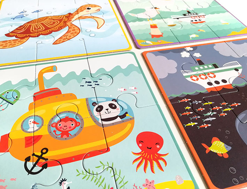 Vier mooie en kleurrijke puzzels! Elke puzzle bestaat uit 6 stukjes. Afmeting Puzzel: 20 x 20cm Leeftijd vanaf: 3+ EANcode: 6416739566672 Afmeting puzzel: 20 x 20cm.