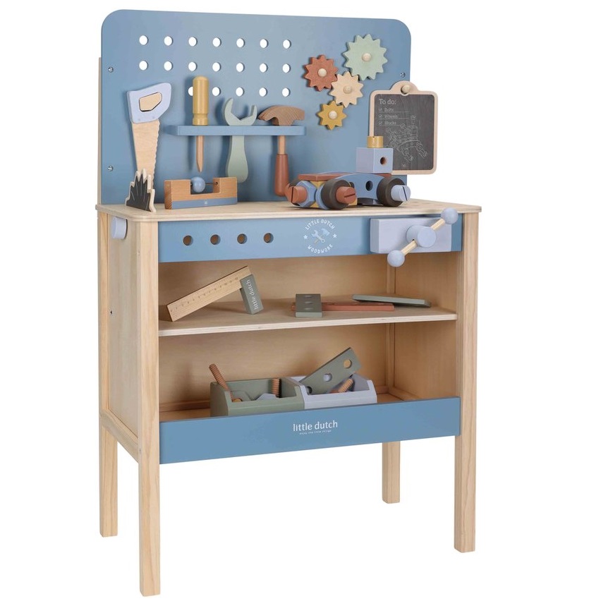 Word de baas van jouw eigen werkplaats met de Little Dutch Houten Werkbank! Met deze stevige houten werkbank kan jij timmeren, bouwen en repareren als een echte klusheld. De set bevat diverse gereedschappen op kindermaat, zodat jij spelenderwijs je motoriek, hand-oogcoördinatie en creativiteit kan ontwikkelen. Het duurzame hout en de vrolijke kleuren maken de werkbank niet alleen stevig, maar ook uitnodigend om urenlang mee te spelen. Of je nu solo aan de slag gaat of samen met vriendjes en vriendinnetjes bouwt, elke klus wordt een spannend avontuur dat jij helemaal zelf regisseert.