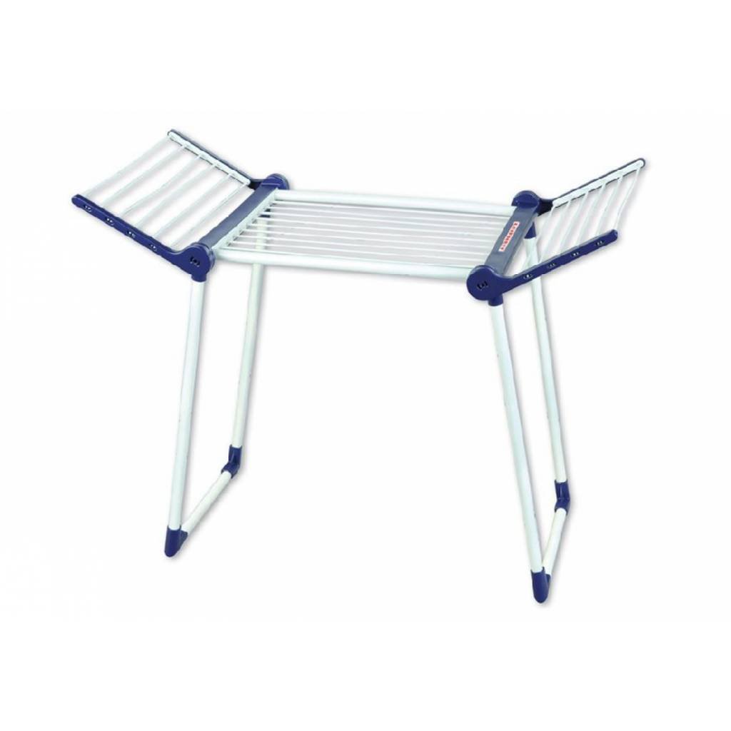 Als de teddybeer nat is geworden of als de kleren van de pop net zijn gewassen, kunnen de kleine mama’s en papa’s ze gewoon zelf ophangen om te drogen. Ze voelen zich dan groot, want het droogrek is gemaakt in het bekende Leifheit-design. Ook al is het de