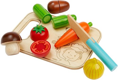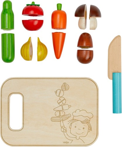 Met deze vrolijke groenteset van Haba wordt spelen in de speelkeuken of winkeltje een echt feest! De kleurrijke groentehelften zijn stevig met klittenband aan elkaar bevestigd, zodat kinderen ze keer op keer kunnen snijden met het houten mes. Zo oefenen ze spelenderwijs hun fijne motoriek en fantasie.De set bevat een snijplank, een houten mes en verschillende soorten groente, waarmee eindeloos veel gerechten kunnen worden verzonnen. Ideaal voor kleine chef-koks en creatieve winkeliers! Dankzij het stevige materiaal en de veilige afwerking is deze set perfect voor kinderen vanaf 3 jaar.Extra informatieStimuleert rollenspel en fijne motoriek