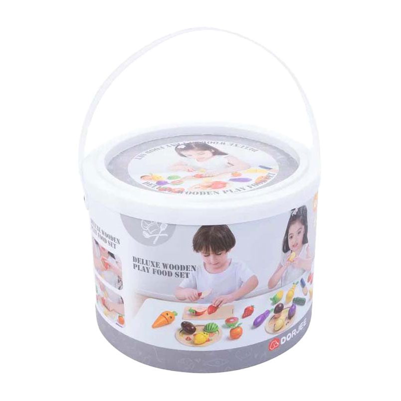 Met de Dorjee Snijset Hout kunnen kinderen veilig en leuk oefenen met snijden! De set bevat 16 realistisch gedetailleerde stukken groente en fruit, 2 borden, 2 snijmessen, 2 snijplanken en een katoenen opbergzak. Dankzij de handige magneten kunnen de stukken in 2 of 3 delen worden “gesneden” en weer aan elkaar worden gezet. Deze set stimuleert fantasierijk rollenspel, fijne motoriek en spelenderwijs leren over voeding.