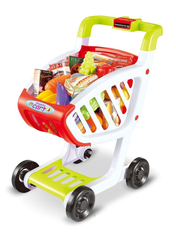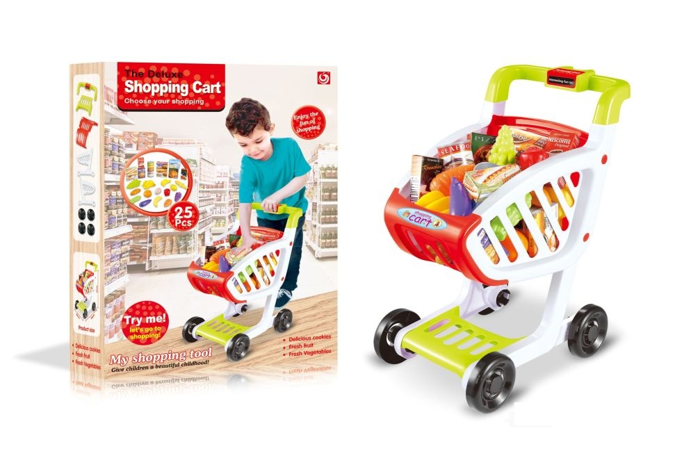 Steek het winkelkarretje vol met de 25 soorten speelvoedsel inbegrepen in deze set. Je kan kiezen uit verschillende soorten fruit, groenten, koekjes, pizza, koffie,… om het karretje mee te vullen. Veel plezier tijdens het winkelen.