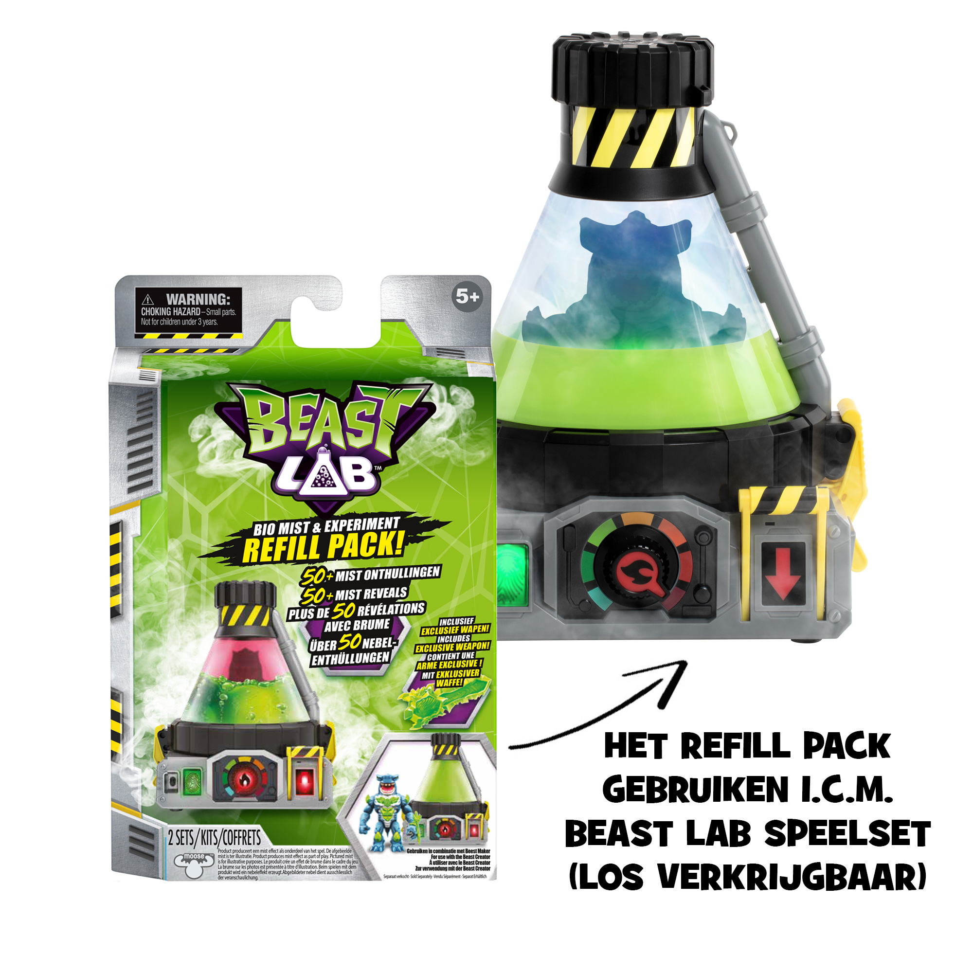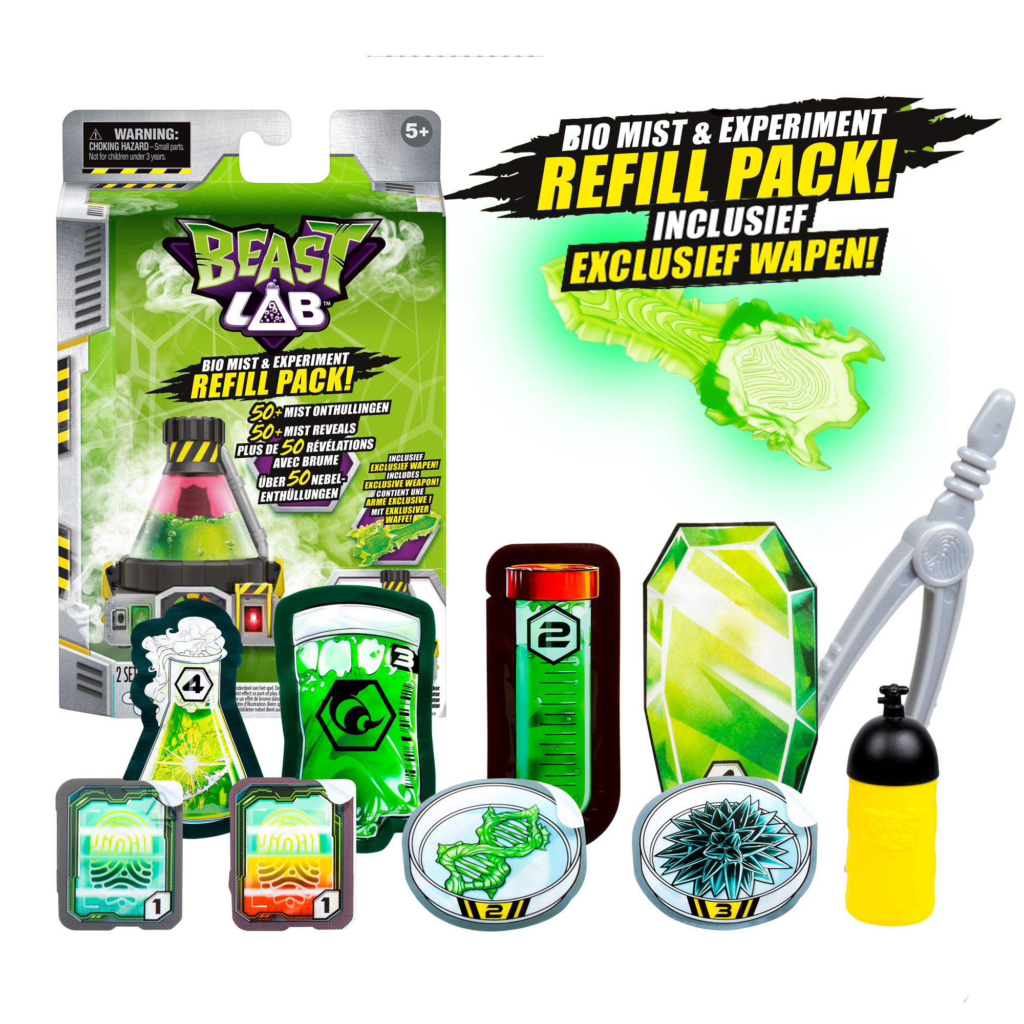 In dit Refill pack voor Beast Lab vind je 2 nieuwe Experimenten voor je Beast Lab Speelset, 3 accessoires. en 12 ml Bio Mist navulling. Inclusief een nieuw cool Wapen voor je Beest! Volg de handleidingen en doe nieuwe ontdekkingen in je Beast Lab! De B