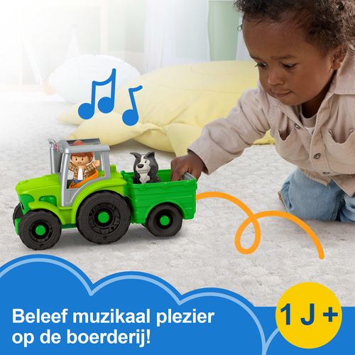 Peuters kunnen zich uitleven op een geweldige boerderij met de Little People tractor van Fisher-Price. Deze muzikale speelgoedtractor om voort te duwen heeft leuke muzikale deuntjes en geluiden, 2 figuren en een aanhanger om mee te slepen. Kinderen vinden