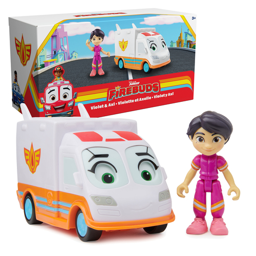 Maak je klaar voor spannende fantasie-acties en vorm een team met je beste Vuur Vriendjes, Violet en Axl. Race samen van de ene naar de andere spannende reddingsmissie. Als er problemen zijn in Motopolis zet je Violet boven op Axls dak en druk je haar omlaag om de oogbewegingen van Axl te activeren. Kijk hoe Axl omhoog kijkt om zijn favoriete vroemmaatje te begroeten. Duw dan Axl heen en weer om telkens weer de held van de dag te worden. Voor nog meer spannende reddingsavonturen verzamel je alle Vuur Vriendjes figuren zoals Bo en Jayden, en hun betrouwbare vroemmaatjes: Flash en Piston, in de Vuur Vriendjes cadeausets met figuren en voertuigsets (extra figuren en voertuigen worden afzonderlijk verkocht). Elke figuur activeert geselecteerde Vuur Vriendjes voertuigen en speelsets met behulp van vroomlink, voor nonstop speelavonturen (voertuigen en speelsets afzonderlijk verkocht). Vuur Vriendjes speelgoedauto’s, actiefiguren en speelfigurensets zijn geweldig speelgoed. Het is een perfect cadeau voor kinderen die graag hun verbeelding gebruiken om zo hun eigen avonturen verzinnen. Het is bovendien goed voor de ontwikkeling van de fijne motoriek. Haal de opwinding van de nieuwe Disney Junior-serie vandaag nog in huis met de Vuur Vriendjes figuur- en voertuigset