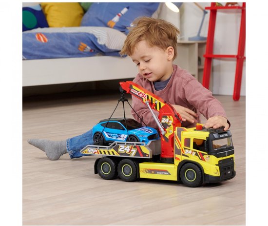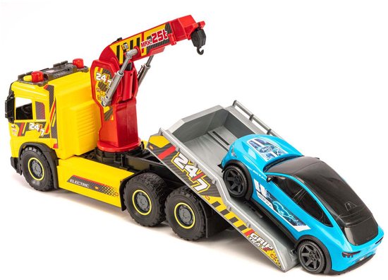 Met licht-en geluidseffecten, een manuele kraanarm en kantelbaar laadplatform lijkt dit speelgoed echt tot leven te komen. Bovendien is er een Ford Mustang Mach‑E (1:16) inbegrepen die meegesleept kan worden.