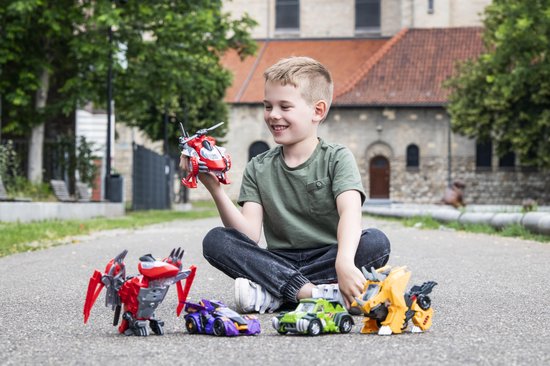 Verzamel ze allemaal, vergelijk hun krachten en kenmerken én kies je favoriet! Ga op een prehistorisch avontuur of transformeer Jaxx de T-Rex in een snelle terreinwagen en maak je klaar voor een spannende race! De com