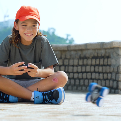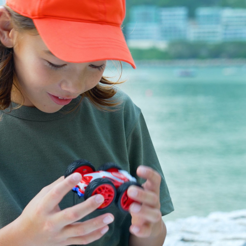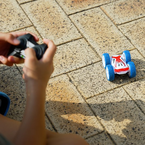 De witte Exost 360 Mini-Flip NEO is een kleine, stoere stuntauto met een schaal van 1:34. De Mini-Flip stuntauto heeft twee verschillende body designs. Hij kan 360 graden spinnen en op twee kanten rijden. Met de afstandsbediening stuur je deze stuntauto alle kanten op: vooruit, achteruit, naar links en rechts. De auto is oplaadbaar via een USB oplaadkabel. De 360 Mini-Flip neemt feilloos alle hindernissen! Bereik: ca. 8 meter. De controller werkt op 4 x AA batterijen (niet meegeleverd). Afmeting auto: 9,5×7,5×4 cm (lxbxh).