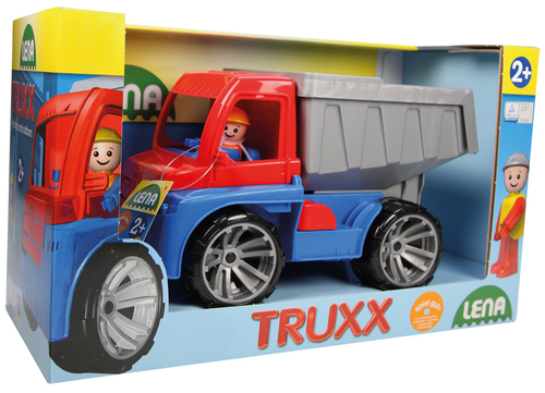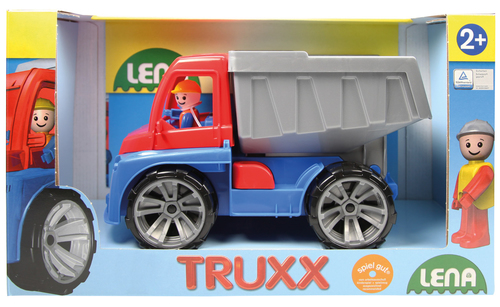 LENA® TRUXX Dump Truck, met gegalvaniseerde stalen assen, de cabine kan worden geopend om te spelen.