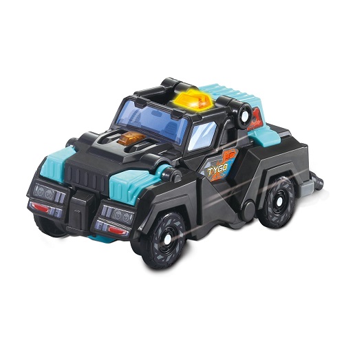 Druk op de motorkap om de stoere terreinwagen in één klap in een coole T-Rex te transformeren! Bouw de T-Rex terug in een terreinwagen en druk op de spreektoets om stoere zinnen en realistische geluiden te horen van zowel het voertuig als de dino.