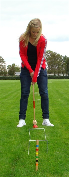 Bij Croquet word er gespeeld op gras. Het gaat erom dat de speler met de bal over het speelveld gaat (een grote ronde maakt), daarna de bal over de middellijn slaat (rover wordt), als rover alle andere ballen croquetteert en tenslotte de eindpiket raakt. Alle spelers hebben een hamer en een bal. Zijn er maar twee spelers dan kan elke speler met twee ballen spelen. Bij wedstrijden is een croquetveld 12 x 24 meter. Bij Croquet word er gespeeld met 2 sticks, 6 ballen en 10 poortjes waar doorheen geslagen moet worden, 6 hamers en handgrepen. Hamer: 15 x 5,5cm – Handgreep: 76 x 2cm – Ballen: Ø 7cm – Poortje: 23 x 17cm – Afmeting verpakking: 77 x 22,5 x 9cm – Gewicht: 3,4 kg Het spel is gemaakt van rubberhout en heeft een lak finish voor langdurig speelplezier. Het spel wordt verpakt in een katoenen bewaarzak en geleverd in een coulourbox.
