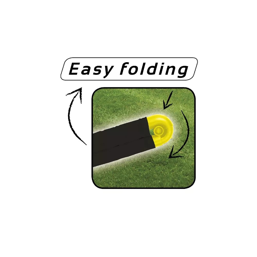 SportX set van 2 Voetbaldoelen, met een super handig vouwsysteem. Op de hoekpunten van dit doel zit een scharnier. Het doel wordt volledig gemonteerd geleverd: gewoon uitklappen en aan de grond verankeren met de 4 bijgeleverde haringen, en je bent klaar v