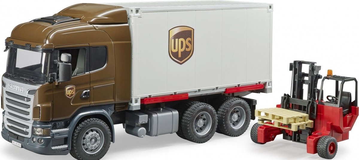 Vrachtwagen Scania R-Serie UPS met heftruck