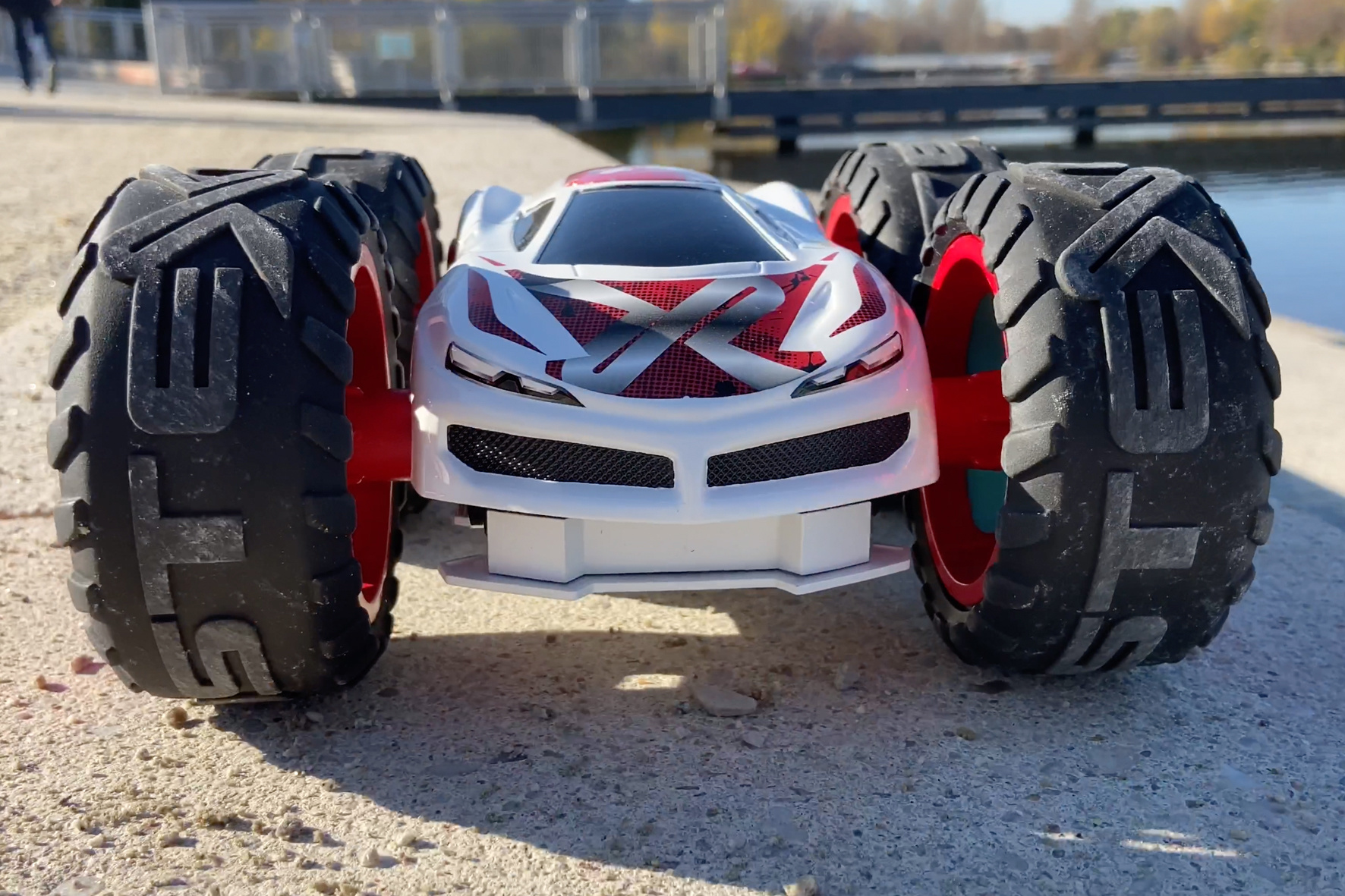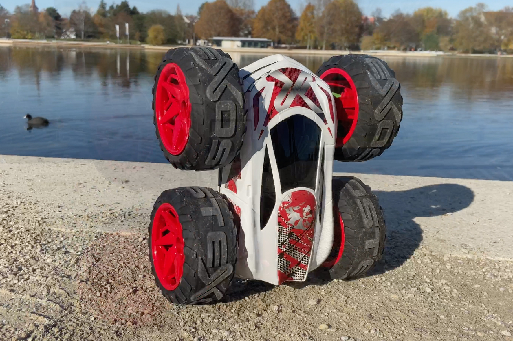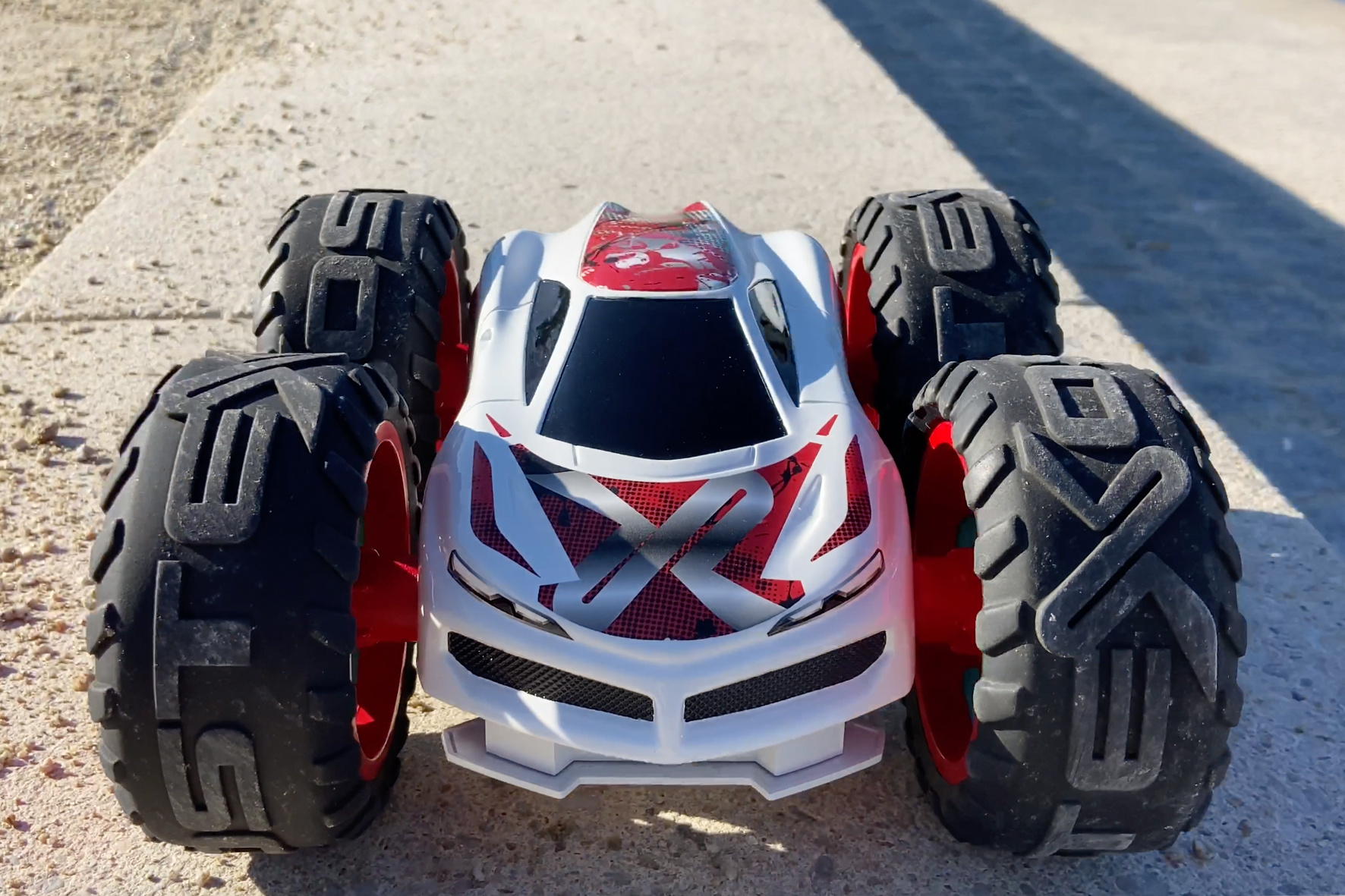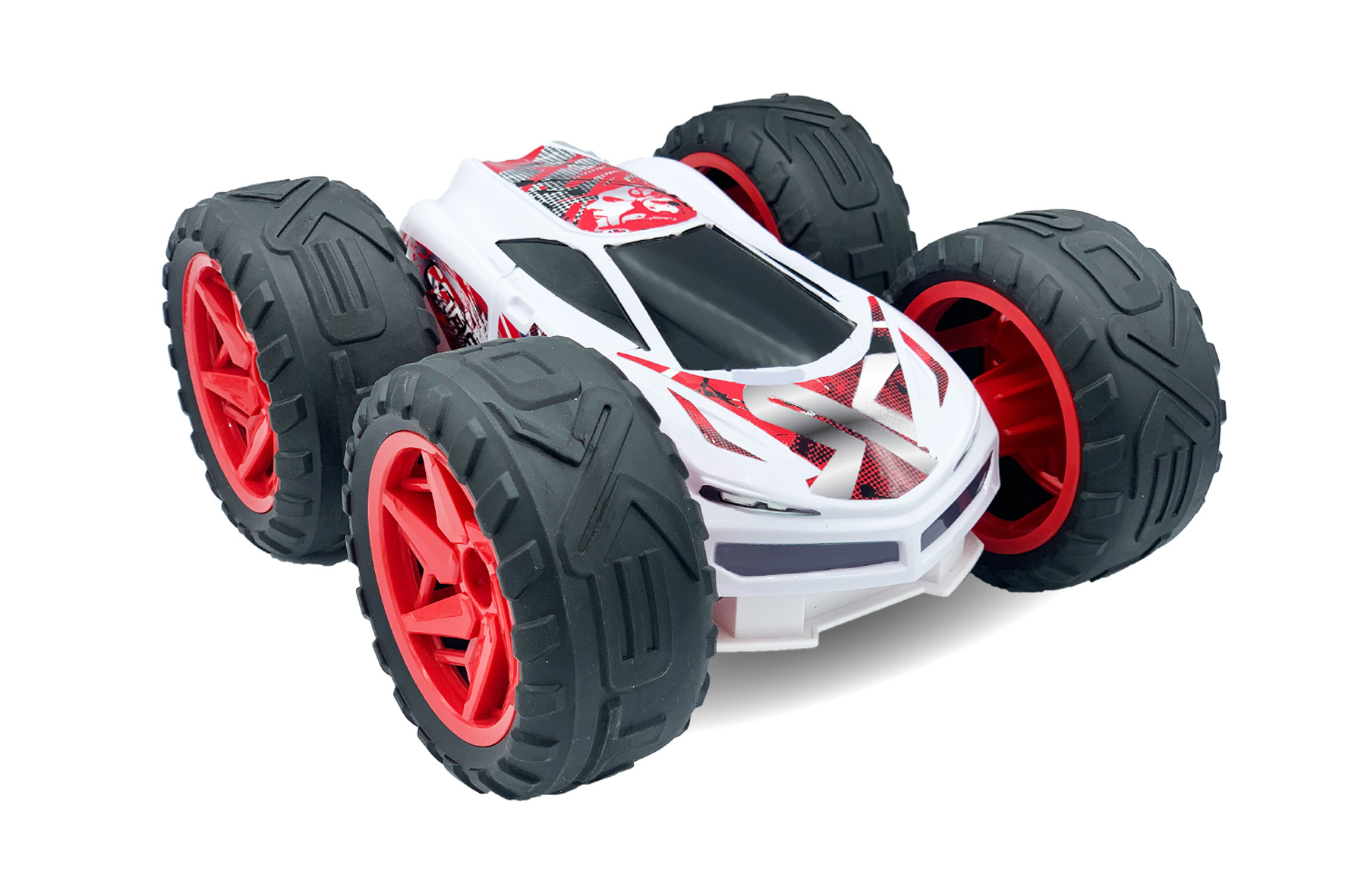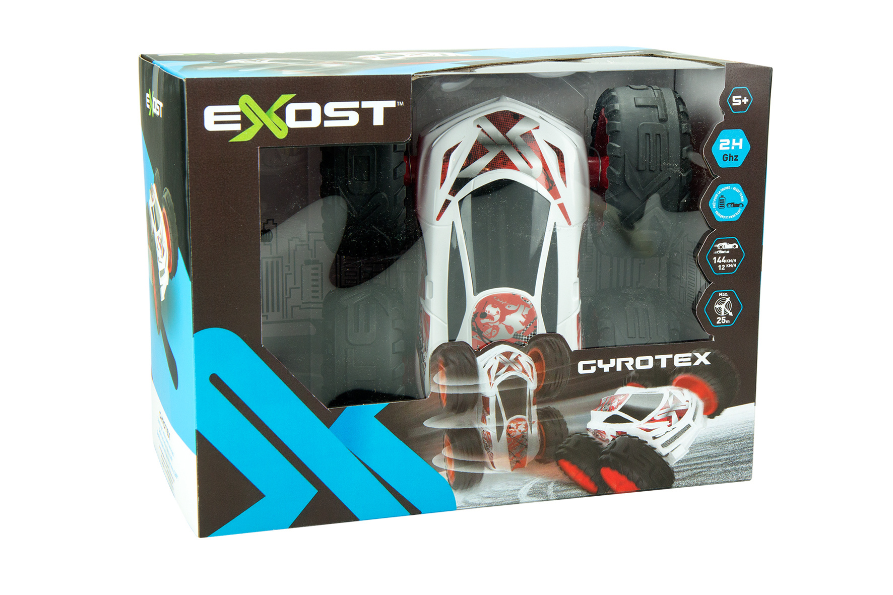Maak coole stunts op twee wielen! De Exost RC Gyrotex is een grote stuntauto met een schaal van 1:12. Zijn speciale banden kunnen alle ondergronden aan en hij haalt snelheden tot 12 km/u. Maar stunten is wat de Gyrotex het liefste doet! Hij kan op zijn
