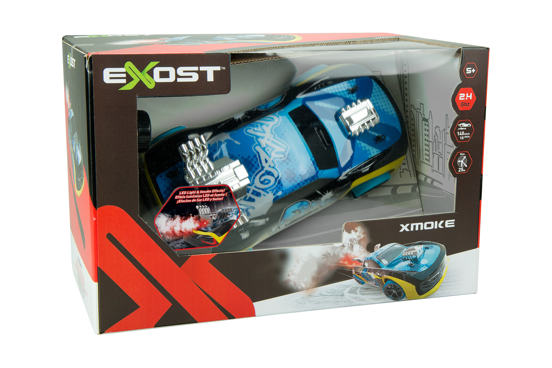 Rijd in stijl met de Exost Xmoke! Deze op afstand bestuurbare auto heeft een urban en aerodynamisch design met een schaal van 1:14. Hij rijdt snelheden tot 12 km/u. De streetcar is voorzien van spectaculaire licht- én rookeffecten! Geef gas en zie de r