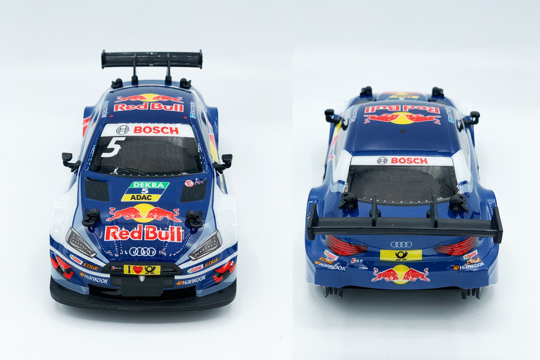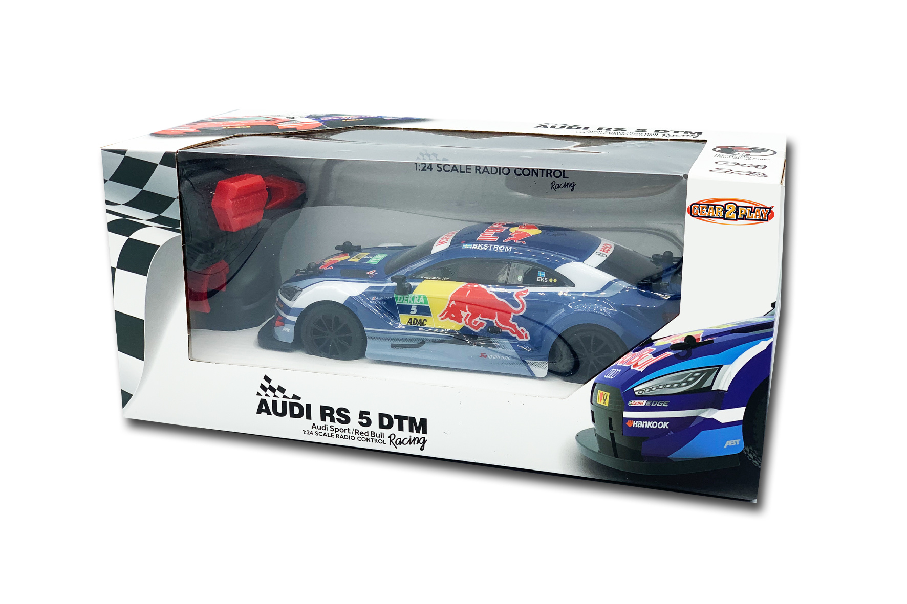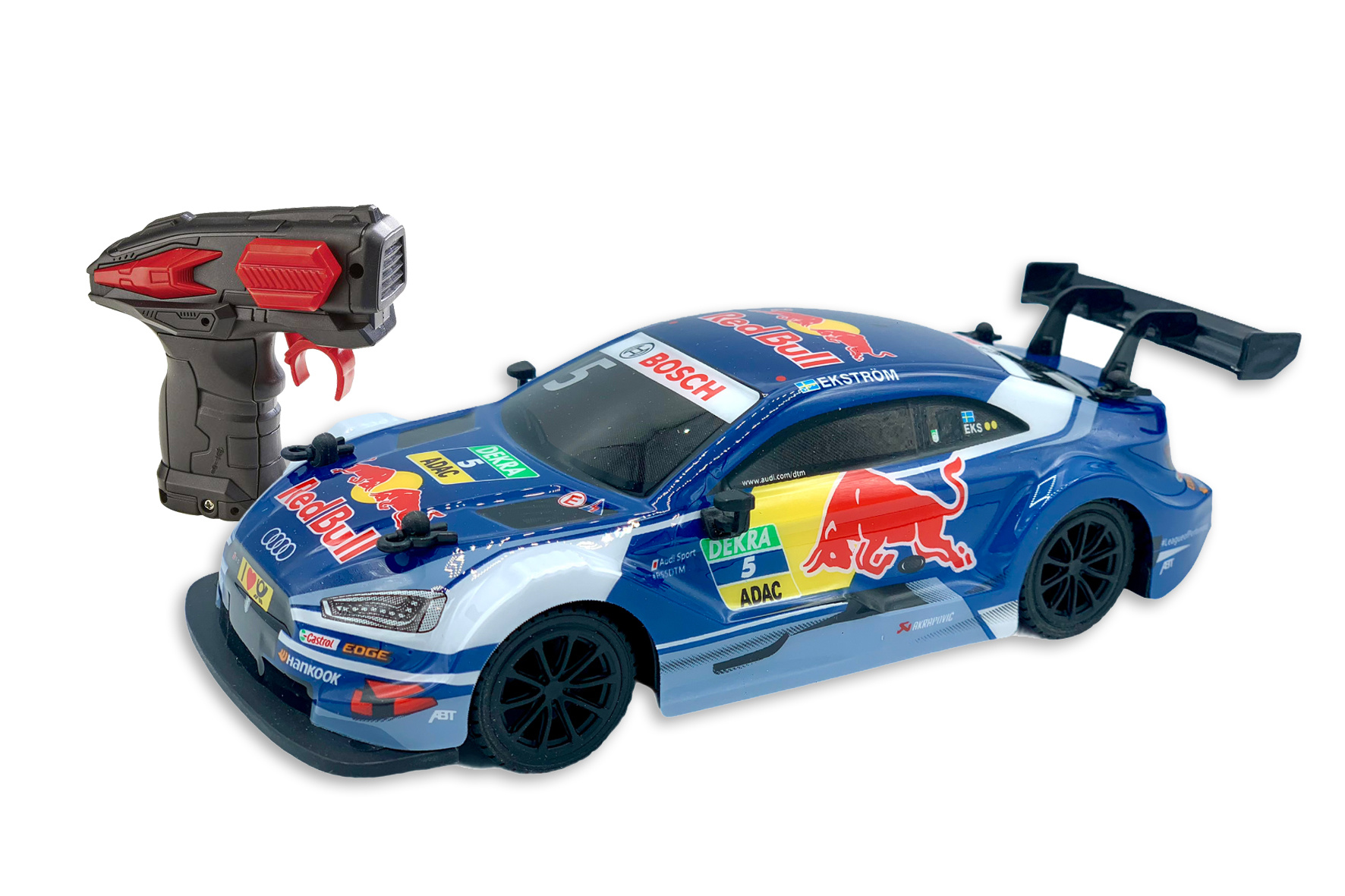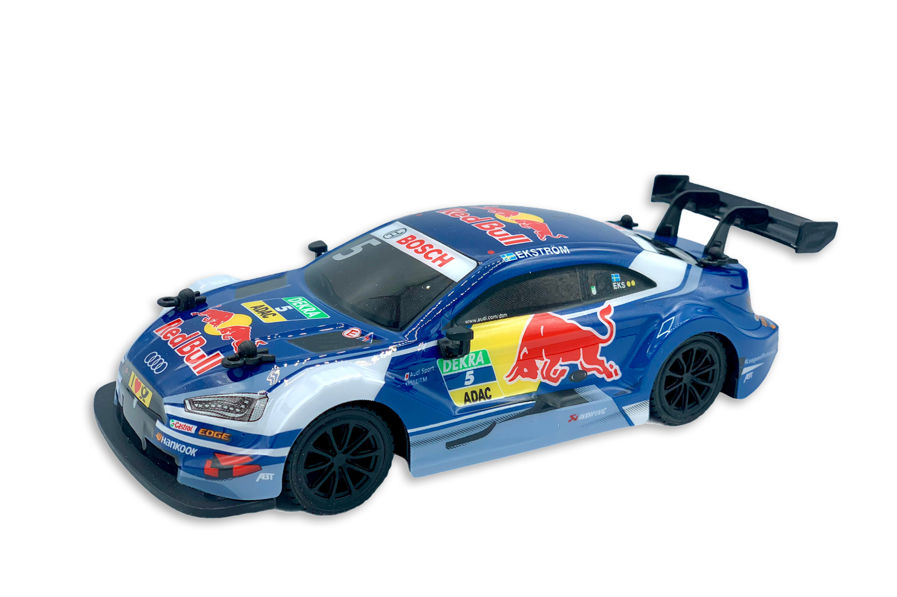 De Red Bull Audi RS5 met een schaal van 1:24 is een stoere op afstand bestuurbare raceauto. Deze Audi RS5 kan een snelheid van ca. 10 km/u behalen. Met coole details en sportief Red Bull design. Frequentie: 2.4 Ghz. Afmeting auto: 20x9x6cm (lxbxh). verpak