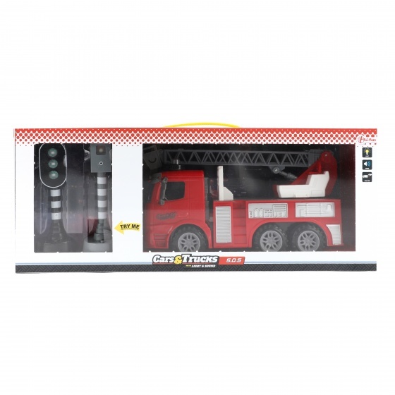 CARS&TRUCKS - Brandweerwagen (rood) en verkeerslichten met licht/geluid