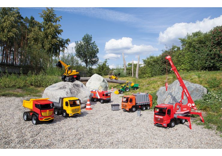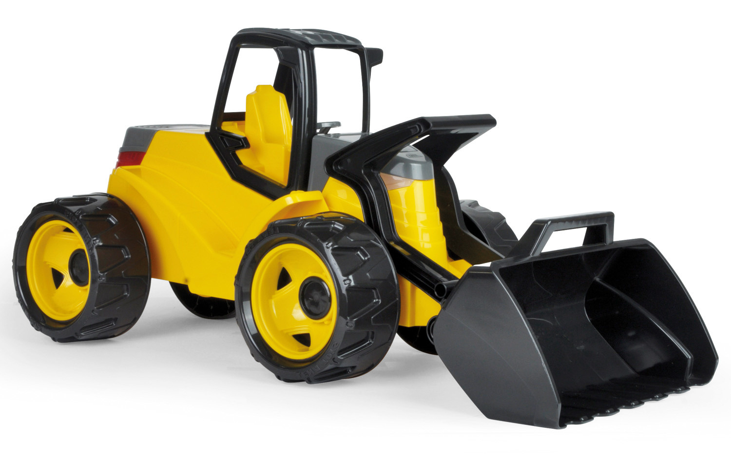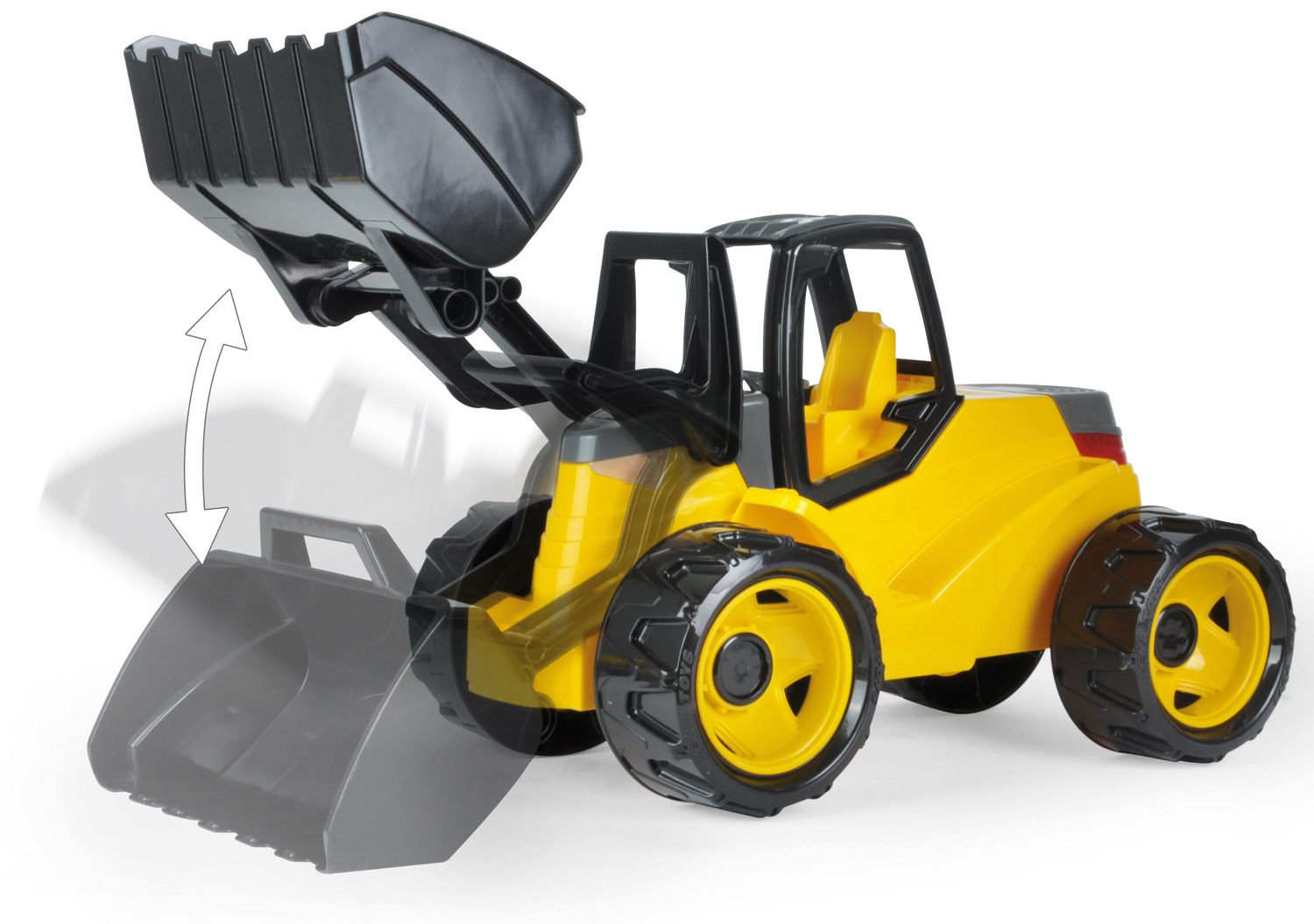 LENA® GIGA TRUCKS schepbak geel / zwart in modern gedetailleerd ontwerp, in realistische kleuren, met grote schep, ergonomisch gevormd handvat voor bediening van de schep.