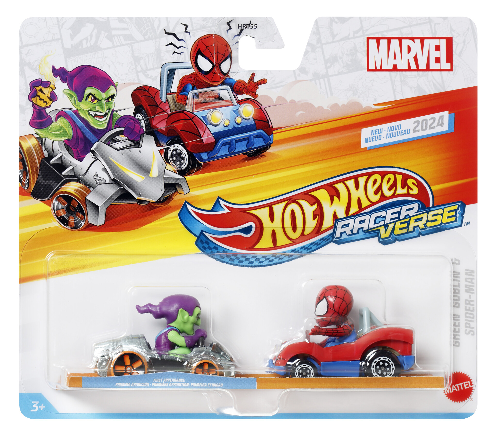 Met deze Hot Wheels RacerVerse set van 2 auto’s krijg je op je Hot Wheels baan bezoek van een paar personages! Elk van deze metalen speelgoedvoertuigen heeft een niet-verwijderbaar personage in de bestuurdersstoel van een themawagen die is geoptimaliseerd voor prestaties op de banen van Hot Wheels. Kies een favoriet duo van populaire amusementsmerken als Disney, Warner Bros., Paramount, Mattel en Universal, of verzamel ze allemaal! Per stuk verkrijgbaar en niet overal leverbaar. Maten, kleuren en versieringen kunnen variëren.