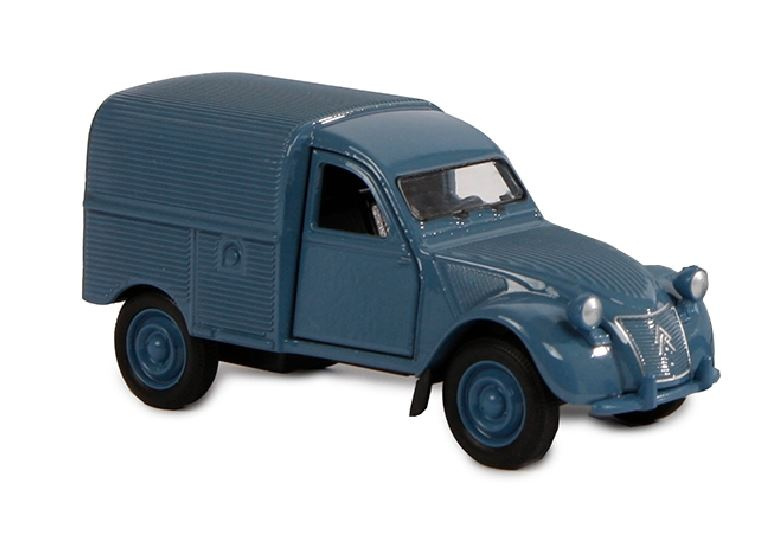 Pull-back Welly Citroën 2CV Fourgonnette – 12cm (grijs/rood/wit/blauw)