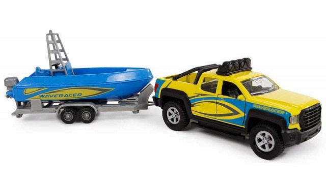 Terreinwagen met trailer en boot met licht/geluid – 29cm