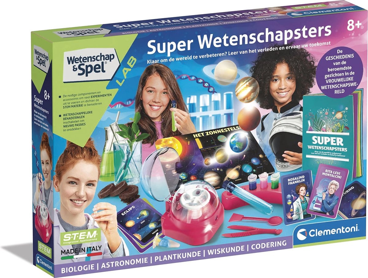 Een wetenschappelijke kit gewijd aan de beroemdste wetenschapsters, met tal van experimenten om meisjes nieuwsgierig te maken voor STEM-vakken. Achter veel ontdekkingen gaan vrouwelijke gezichten schuil, geestige en koppige wetenschapsters die, door de