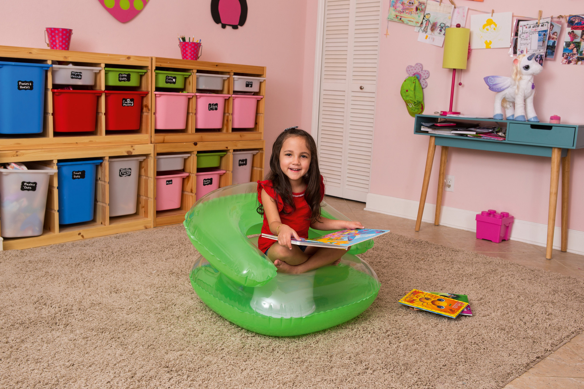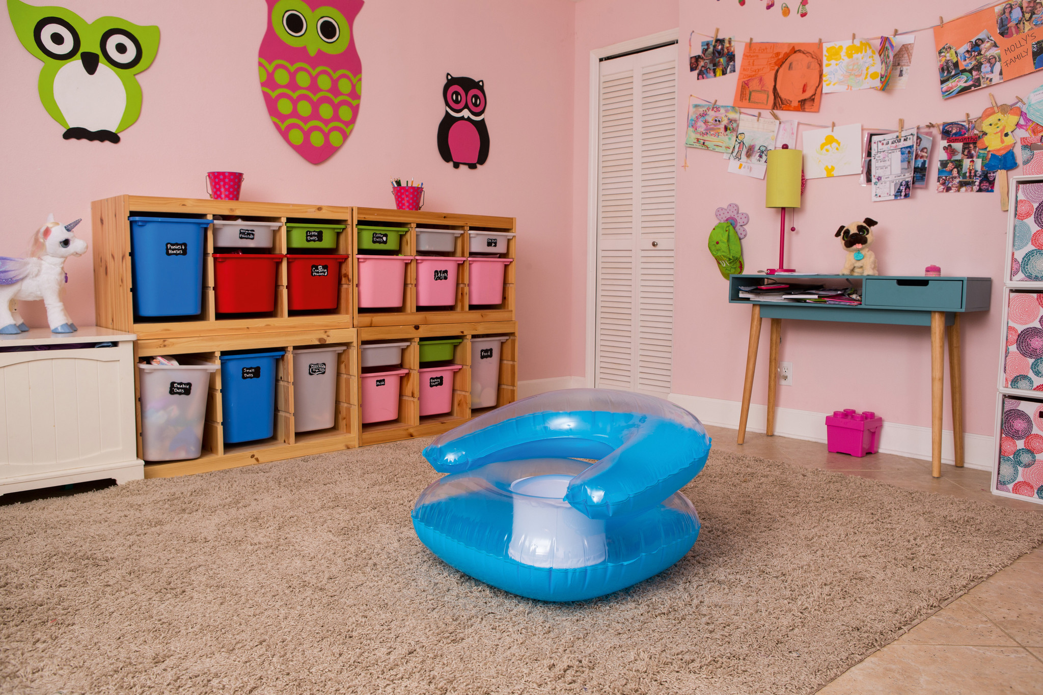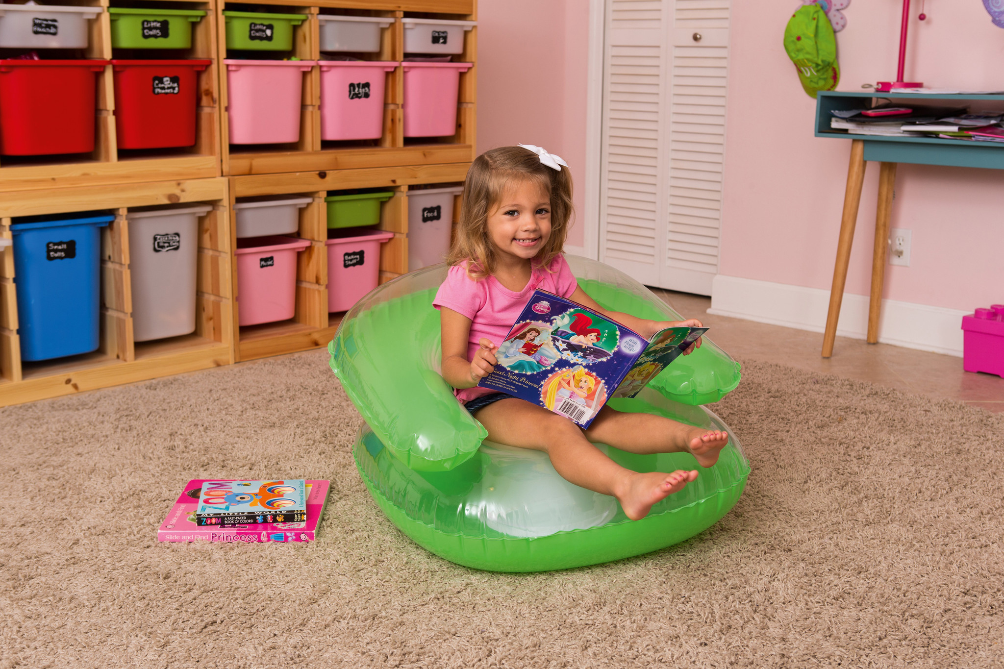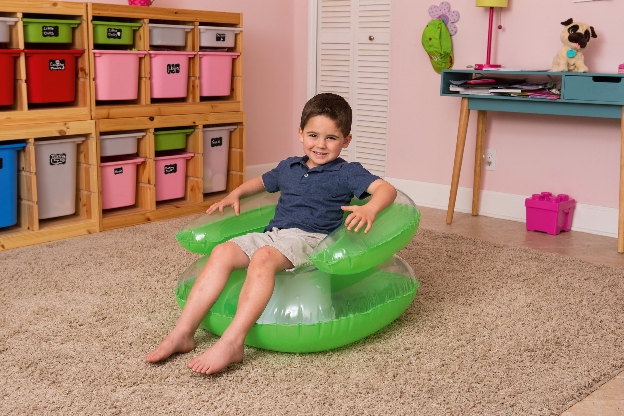 DOORKIJK KINDERSTOEL – Veiligheidsventielen – Stevig vinyl, getest – Comfortabele leuningen – Reparatie plakker bijgesloten Inhoud: Een zetel, reparatiepatch