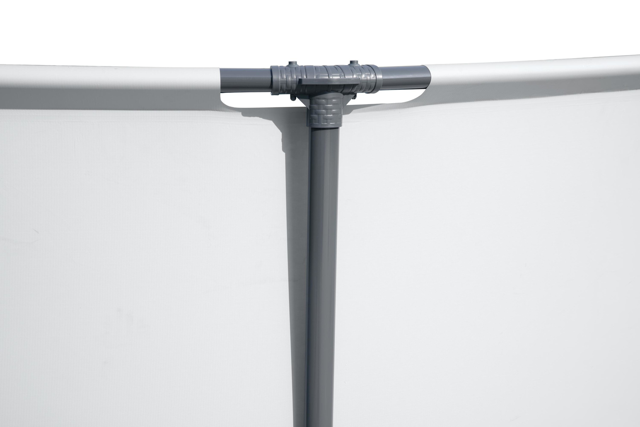 Complete set: rond stalen frame zwembad met trap en cover. Uitgerust met een extra versterkt, corrosiebestendig stalen frame met het slimme seal & lock systeem. Zeer gemakkelijk te installeren. Van duurzaam Tritech materiaal, bestand tegen UV stralen en c